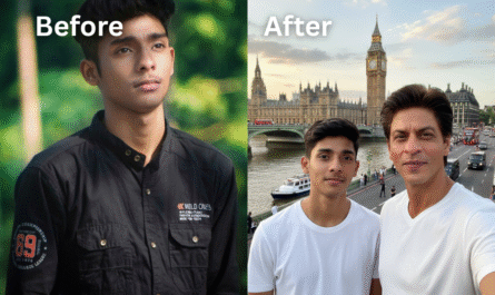 Imagine standing before a tall mirror framed by sleek vertical white light strips. The reflection is sharp, crisp, and cinematic โ designed to highlight the very essence of confidence. With a medium-light skin tone and neatly styled short dark brown hair, the subjectโs facial features are kept 100% true to the original reference image, ensuring photorealism and complete authenticity.