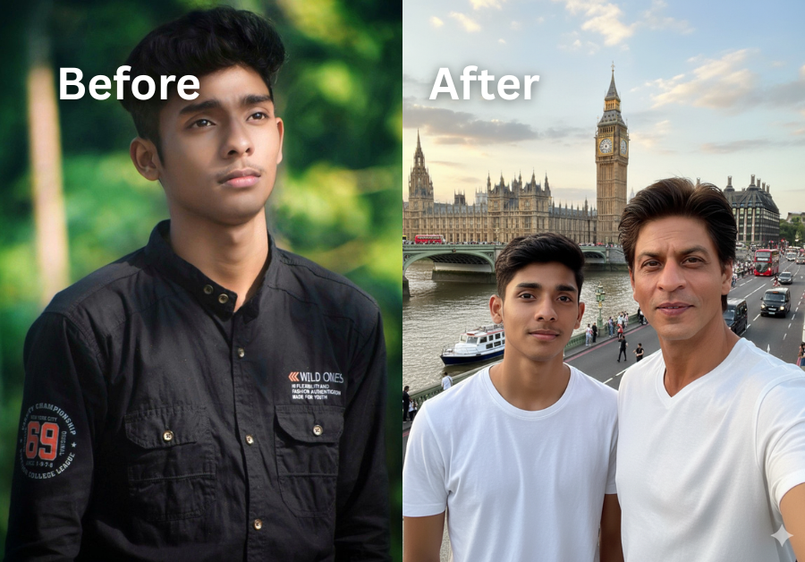 AI art isn’t just about fantasy landscapes or futuristic designs — it’s also becoming a way to capture personal dreams in photo-realistic detail. One of the most exciting uses of AI portraits is simulating celebrity meetups in iconic locations. Imagine standing in London, phone in hand, casually taking a selfie with none other than Shah Rukh Khan.